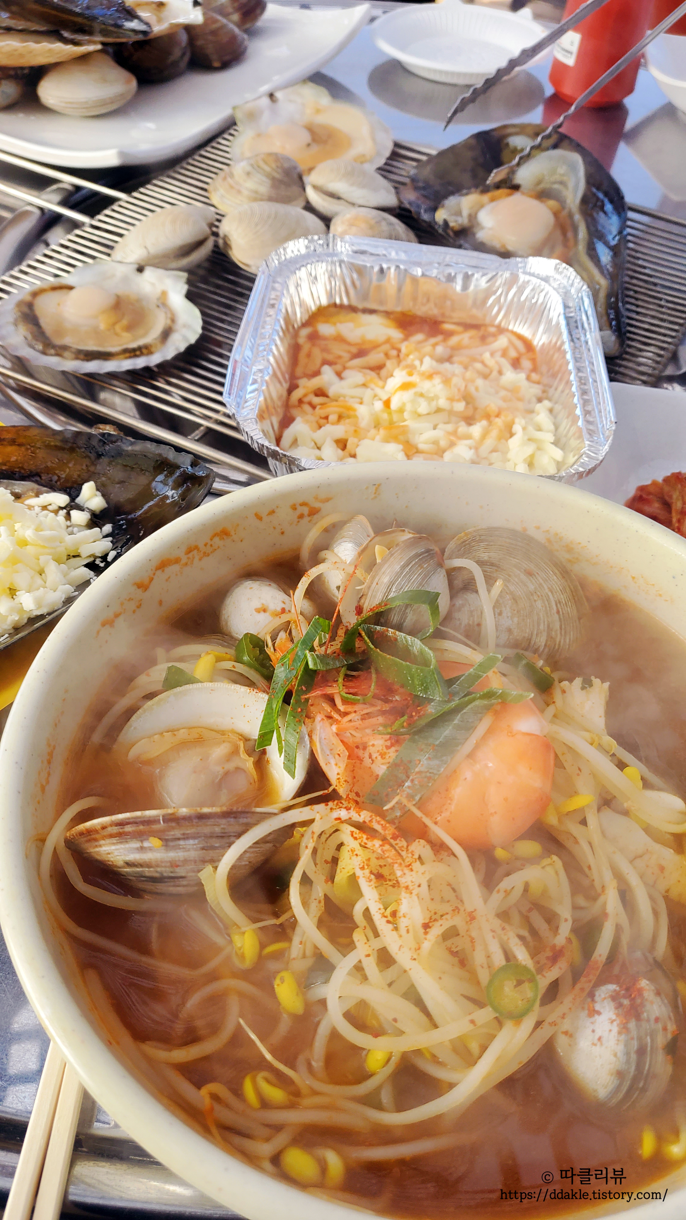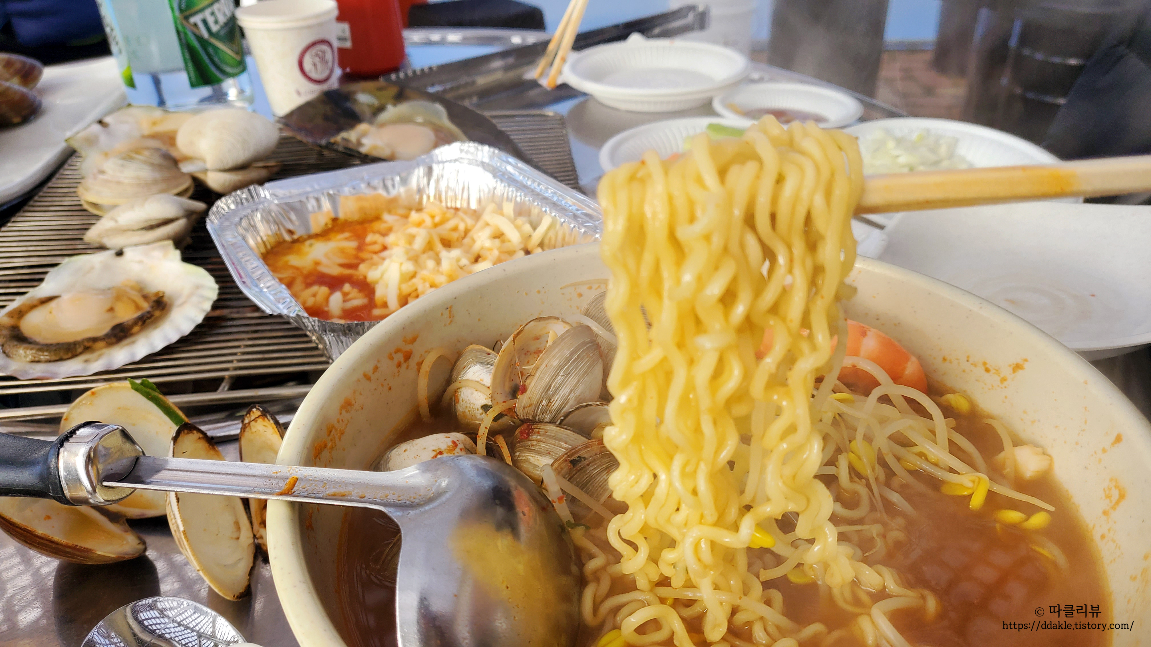 조개구이에 한 눈 팔려서 라면은 뒷전 ㅋㅋ