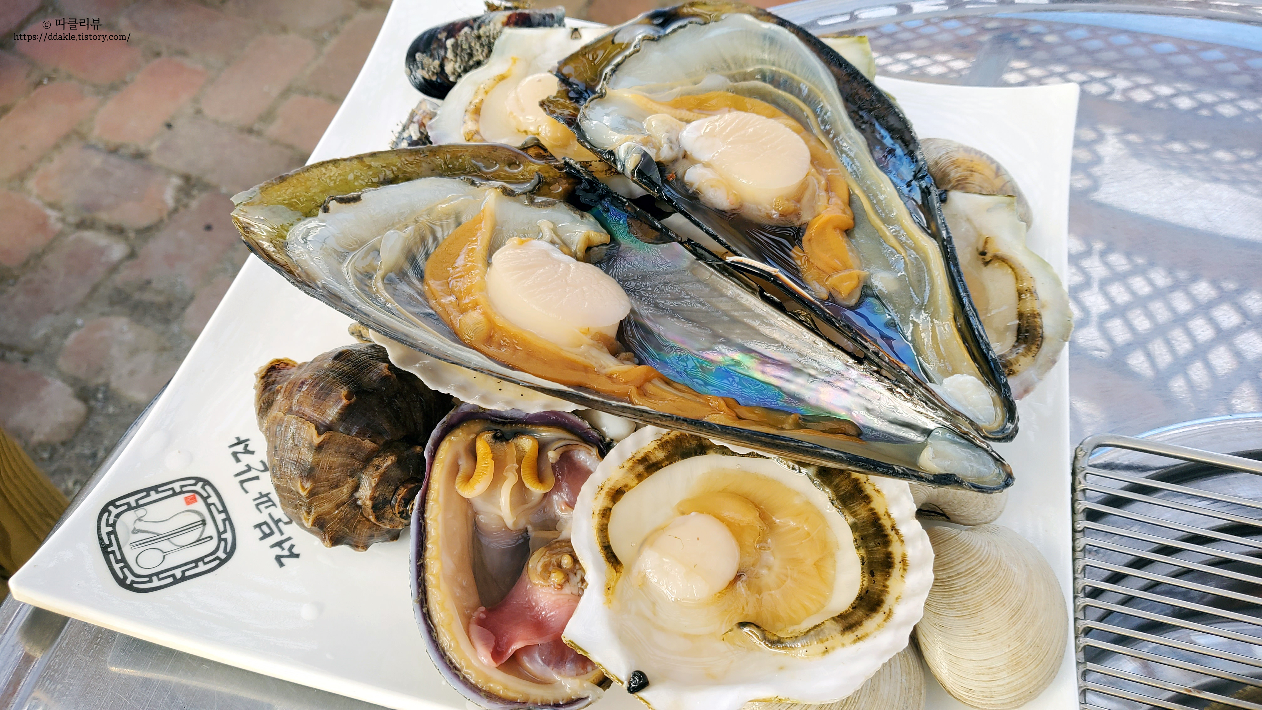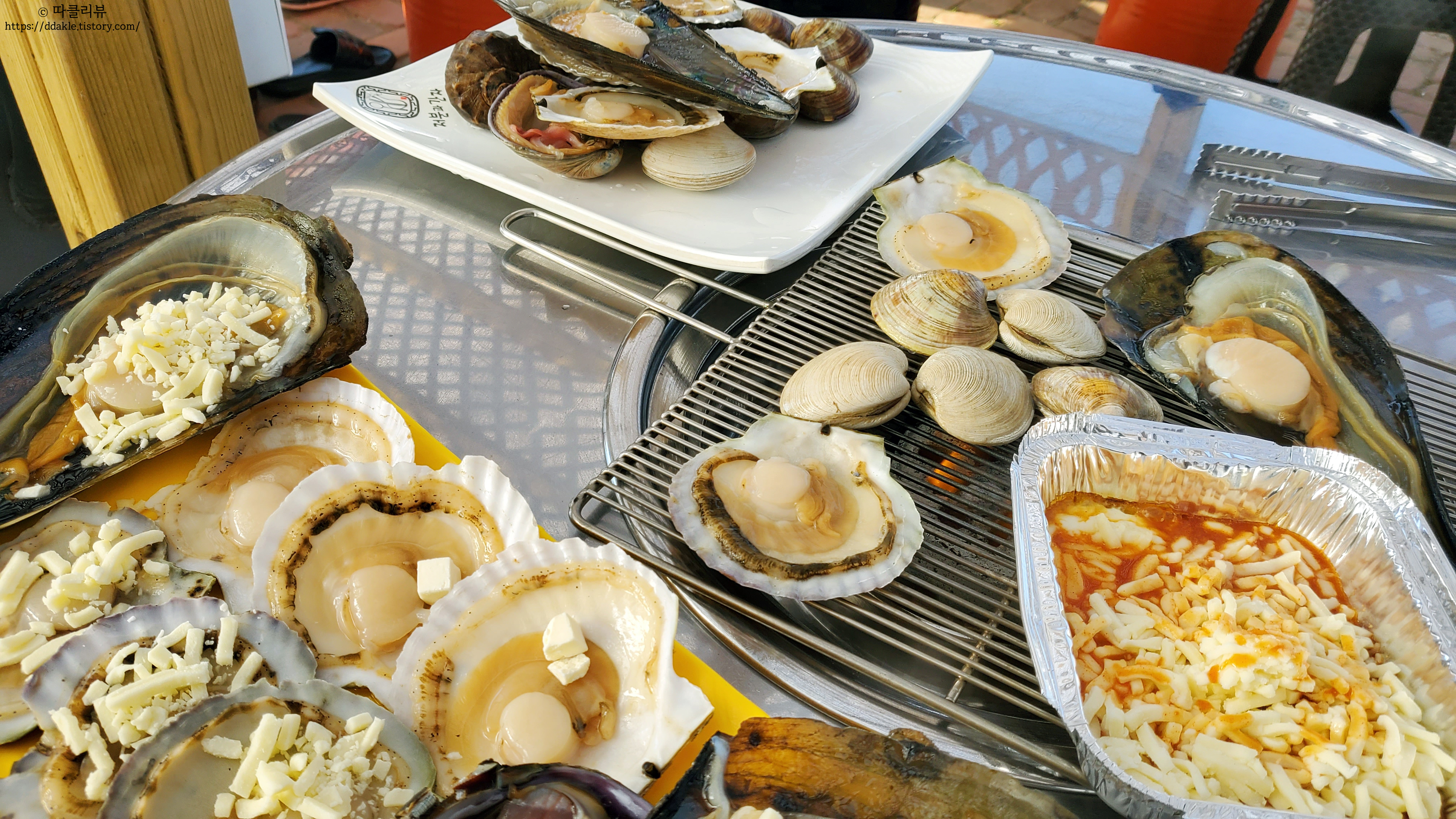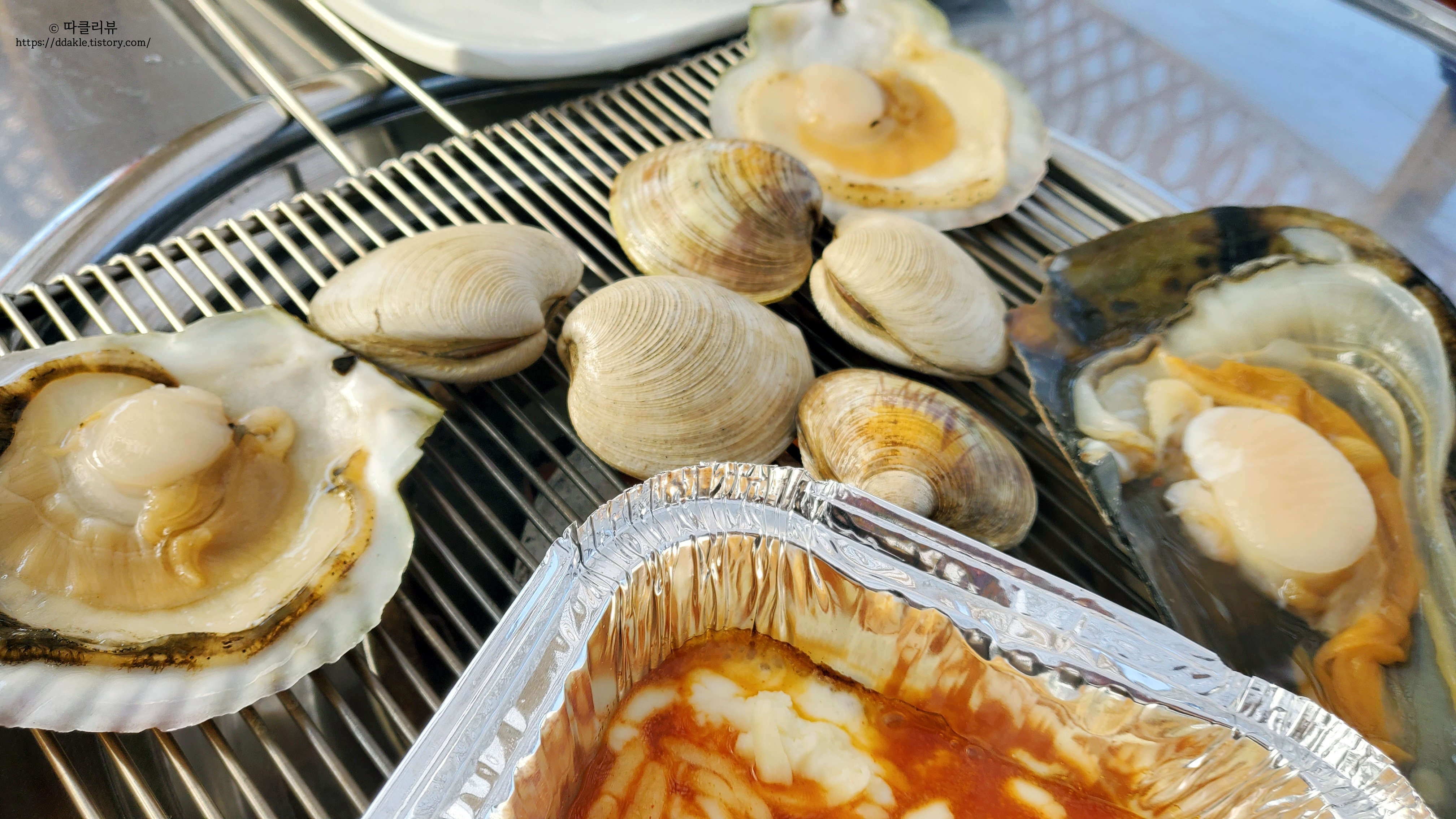 통통하고 엄청난 양의 조개구이가 테이블을 꽉 채웠다!